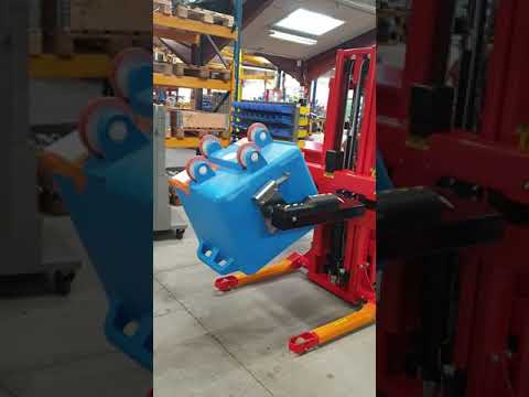 The arms are fitted to a Logitrans straddle stacker truck, to enable the bins to be lifted, lowered and moved with minimal operator effort. 3 models are available: