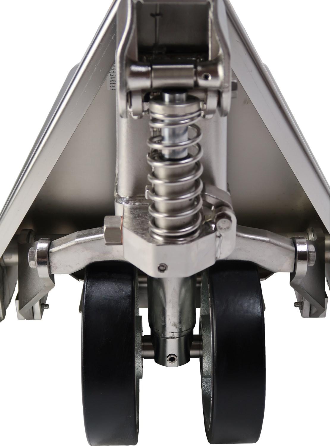 The Panther Inox Plus is available with fork spans 520mm (EUR pallets), 680mm (UK Chep pallets). Alternatively, please contact us for a custom fork span. A choice of fork lengths from 600mm to 1520mm are also available. As an option, the Panther Inox Plus can be supplied with a foot operated parking brake