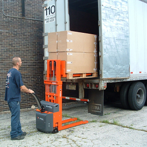Hand pallet trucks and electric pallet trucks in transport & distribution industries. Our electric pallet trucks have powered lift & propulsion and some models are light enough for use on delivery vehicles. A fully powered pallet truck provides a cost-effective alternative to a hand pallet truck. Electric pallet trucks require no operator effort and prevent operator strains and injuries, particularly when loads are transported on slopes, inclines & driveways. Some pallet lifters can handle loads in excess of 1000kg and are useful for handling stone, tiles, slates & building materials. Our pallet trucks can assist delivery drivers and help to make customer deliveries safer.